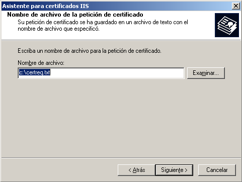 8. Completar la información solicitada por el Asistente para certificados de IIS.