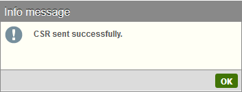 - Haga clic en el botón ‘Enviar’ para enviar el CSR a Comodo aparecerá una ventana de confirmación: